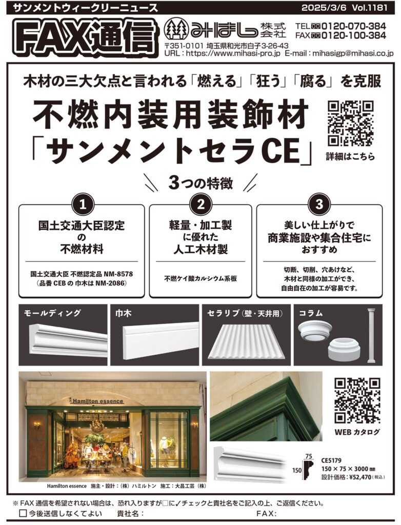 「不燃内装用装飾材 サンメントセラCE」